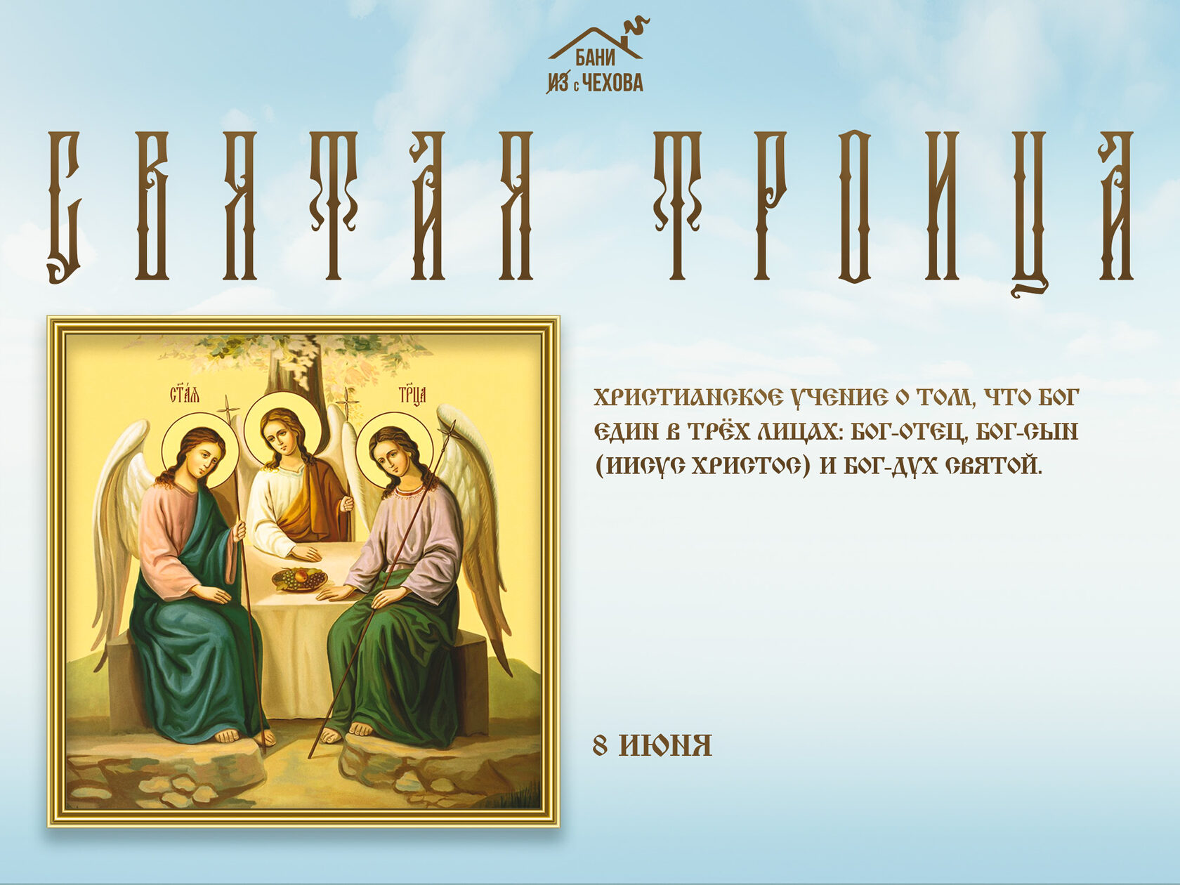 Поздравляем вас с праздником Святой Троицы! Этот светлый и радостный день напоминает нам о единстве и любви Бога Отца, Сына и Святого Духа. Празднование Троицы приносит в наши сердца мир, радость и надежду, укрепляя нашу веру и вдохновляя на добрые дела.