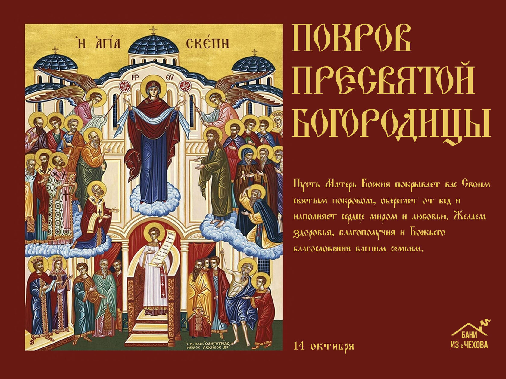 Поздравляем вас с великим и светлым праздником — Покровом Пресвятой Богородицы! Пусть Пресвятая Богородица ограждает вас Своим заступничеством, хранит ваши семьи в мире и благополучии, а каждый день наполняется радостью и теплом.